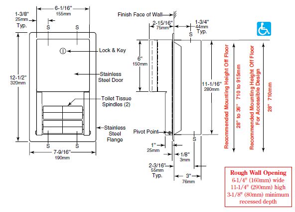 B4388 RVS inbouw toiletrolhouder CONTURA