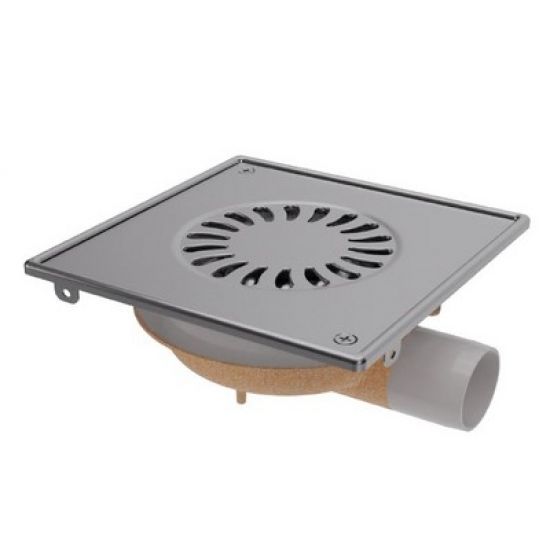 1820V Doucheput 196x196x81mm met zij-uitlaat en vergrendelbaar rooster