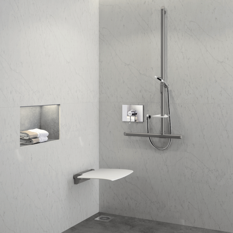Het vernieuwend design van de grepen en zitjes zorgt ervoor dat de medische uitstraling van een toegankelijk gemaakte badkamer verdwijnt, waardoor er slechts een gevoel van welzijn en comfort ervaren wordt, zowel binnenshuis als in een publieke ruimte.