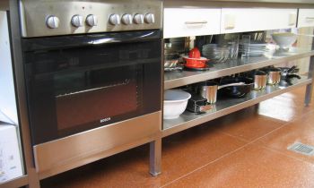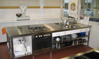 De praktijkkeuken van deze school is voorzien van op maat gemaakte aanrechtbladen en schappen in roestvaststaal. Daarnaast zijn er in de praktijklokalen speciale 'leerlingsets' gerealiseerd. Hierbij zijn een spoelbak en een kookplaat in een werktafel verwerkt. De school kan er ook voor kiezen om hier nog een oven in te plaatsen, of er potten en pannen te bewaren.