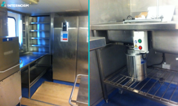 Op locatie zijn deze op maat gemaakte units geplaatst samen met bestaande onderdelen, zoals ovens en koelkasten. Naast het leveren van nieuwe onderdelen zijn er aan boord ook aanpassingen gemaakt op bestaande spoeltafels. Zo is er een extra spoelbak ingelast en zijn er verstevigingen gemaakt in bestaande frames.