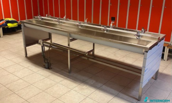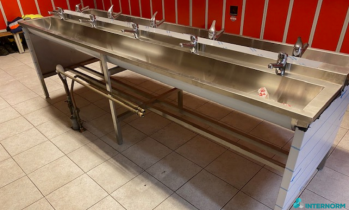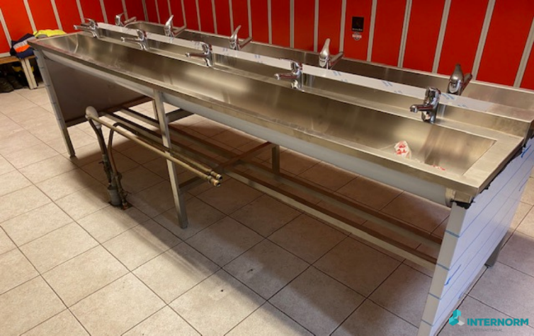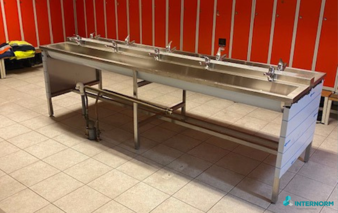 Deze RVS wastrog staat op een gemeentewerf in Pijnacker waar het personeel gemakkelijk en snel hun handen kunnen wassen.