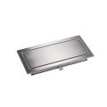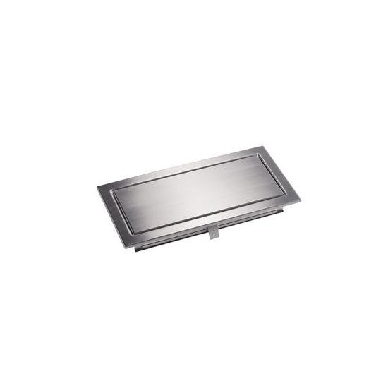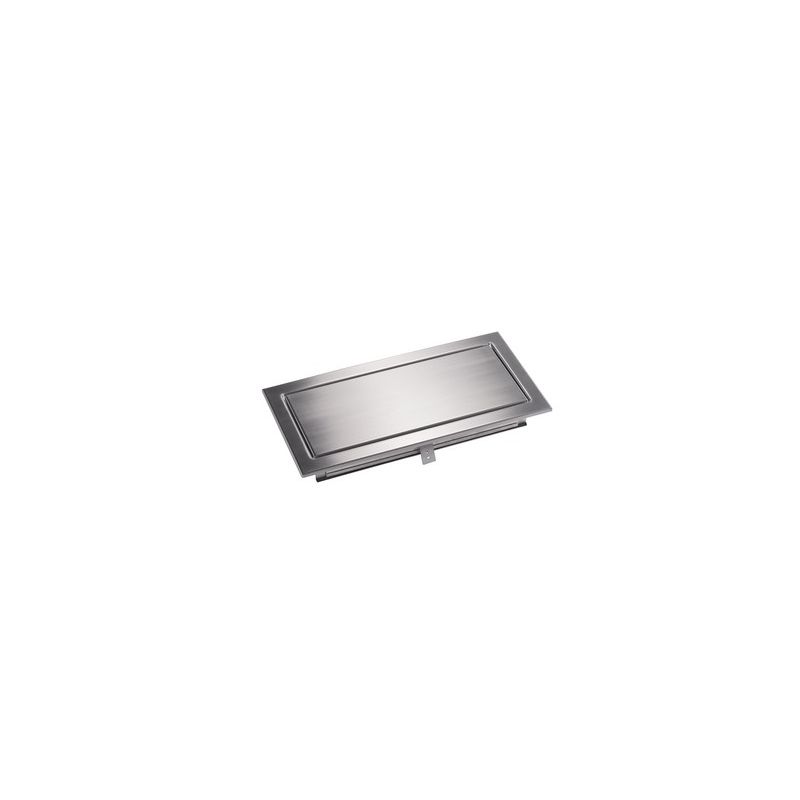 RVS doorvoer. Montage in wand. Uitw. afm. 460x230mm, klep inw. 395x165mm. Met klem/veer Montage in wand of kastdeur (met klem)