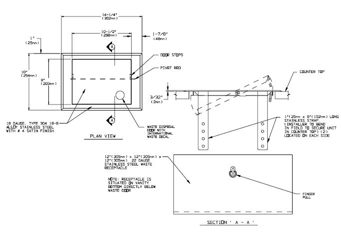 Werkt alleen optimaal bij montage in blad. Uitw. afm. 360x255mm, klep inw. 265x200mm. RVS 304 zelfsluitende klep tbv afval. Montage in werkblad / spoelblad. Voor opbouw