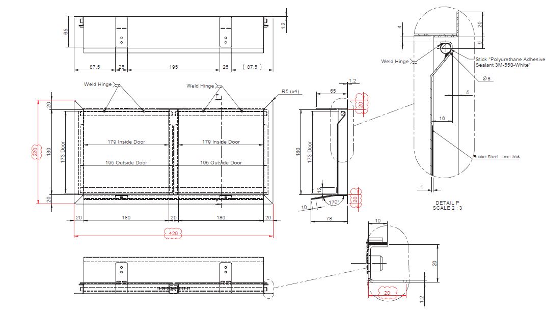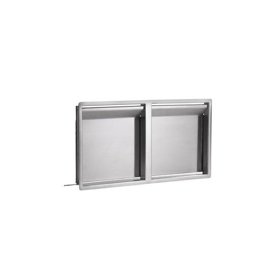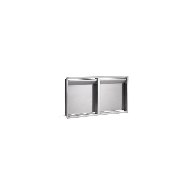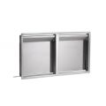DUBBEL Montage in wand of kastdeur (zonder klem/veer) RVS doorvoer tbv afval/handdoekjes. Montage in deur of wand. Uitw. afm. 420x220mm, dubbele klep inw. 2x180x180mm. ZONDER klem/veer