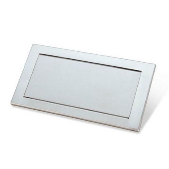 RVS inbouw zelfsluitende klep tbv afval. Montage in kastdeur klep afm. 267x123mm. Uitw. 325x173x10mm. Inbouwmaat 282x160mm