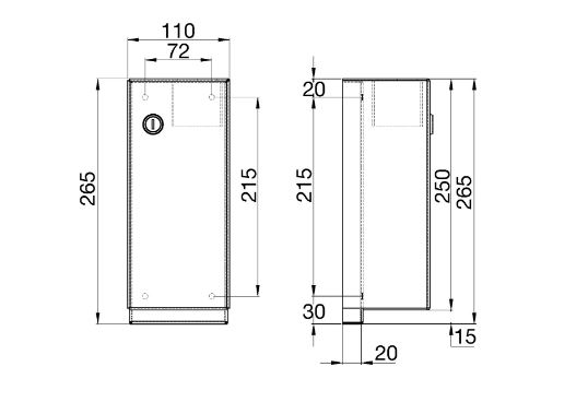 RVS 304 naaldenbox materiaaldikte 2mm met slot plastic inzet, vandaal proof