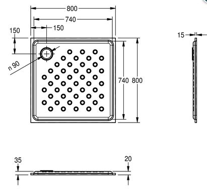 RVS douchebak 800x800mm EXCL. afvoerplug artikel 4240 / Tempoplex past in deze douchebak