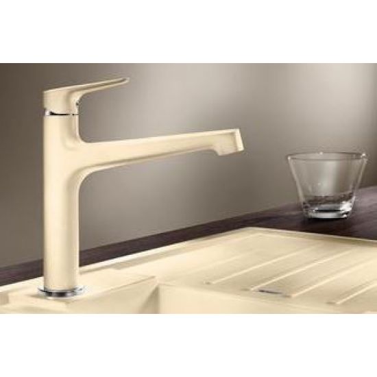 BLANCO Silgranit kraan. Hoge mengkraan met harmonische interactie van cilindrische en rechtlijnige vormen. Lange, licht stijgende uitloop voor het eenvoudig vullen van potten en vazen. Kleuruitvoering in perfecte afstemming met spoeltafels en spoelbakken in SILGRANIT®.