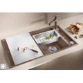 BLANCOAXIA-III5S Tartufo spoelbak met afdruip voor opbouw uitw. 915-510mm. Incl. korfplug/w.o. Vlotte, ergonomische workflow langs twee assen. Met glazen snijplank. Design gekenmerkt door strakke lijnen en een dunne, ultravlakke boord. Zeer kleine hoekradii voor een optimale benutting van oppervlakten en volumes. Het multifunctionele inzetbakje kan ook vrij in de hoofdbak geplaatst worden om de voedselbereiding te vergemakkelijken. Hoogwaardige afwerking met verdekte C-overflow™ en InFino™ afloopsysteem – elegant geïntegreerd en uiterst onderhoudsvriendelijk. Snijplank in veiligheidsglas, plaatsbesparend afloopgarnituur, InFino® korfventiel 3 ½'' met draaiknopbediening Ook beschikbaar in versie voor vlakbouwmontage