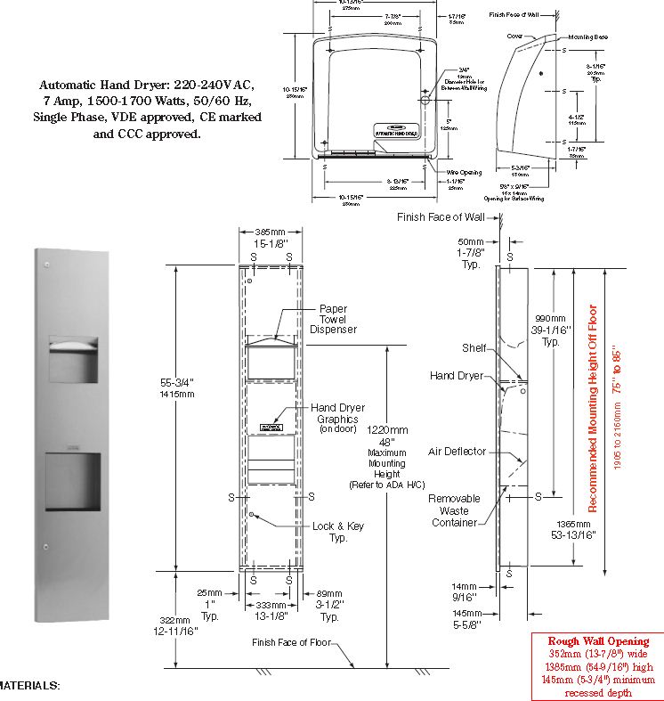 B38033 RVS 3-in1 inbouw unit handdoeken/afvalbak/droger Papierdispenser
