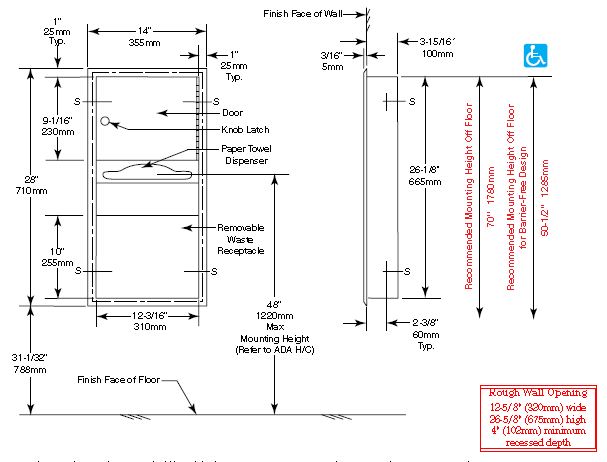 B369 RVS inbouw papier en handdoekdispenser en afvalbak 'satin finish' Papierdispenser
