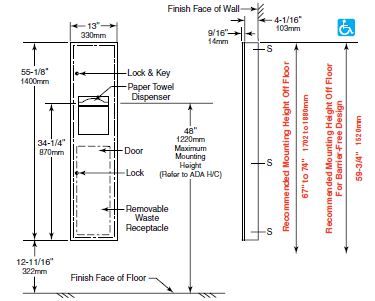 B380349 Opbouw unit handdoekdispenser en afvalbak Papierdispenser