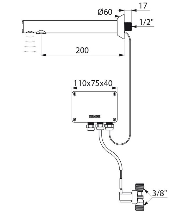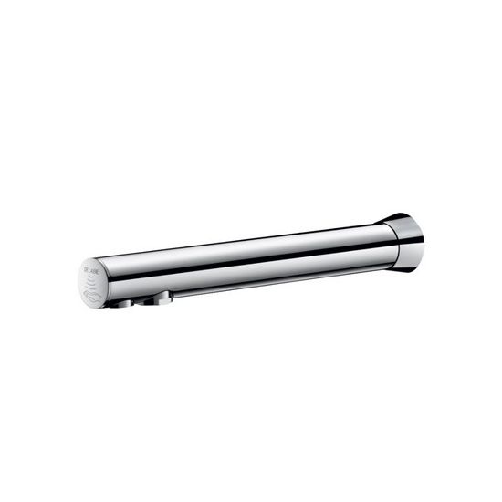 Elektronische wastafelkraan voor inbouw: Individuele elektrische sturing IP65. Stroomtoevoer via netspanning met transfo 230/12 V. Debiet ingesteld op 3 l/min bij 3 bar, aanpasbaar tussen 1,5 en 6 l/min. Kalkwerende straalbreker. Configureerbare periodieke spoeling (ingesteld op ~60 sec elke 24 h na laatste gebruik). Aanwezigheidsdetectie met actieve infrarood technologie, geoptimaliseerd aan het uiteinde van de uitloop. Filter en elektroventiel M3/8". Lichaam in massief messing verchroomd. Verchroomde uitloop L.200 mm voor inbouw installatie. Anti-blokkeerveiligheid in stromende toestand. Uitloop met gladde binnenkant en beperkte hoeveelheid water (beperkt bacteriënvorming).