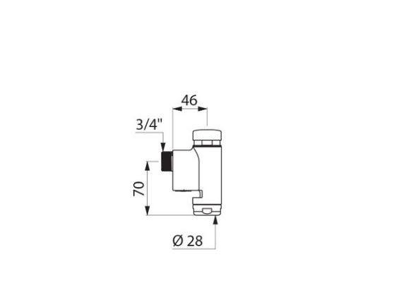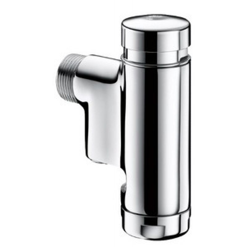 Zelfsluitende set voor opbouw directe toiletspoeling: Soepele bediening. Zelfsluiting ~7 sec. Ingebouwde luchtsnuiver. Ingebouwde stopkraan en debiet/volume regeling. Lichaam en drukknop in massief messing verchroomd. Haakse aansluiting M3/4".