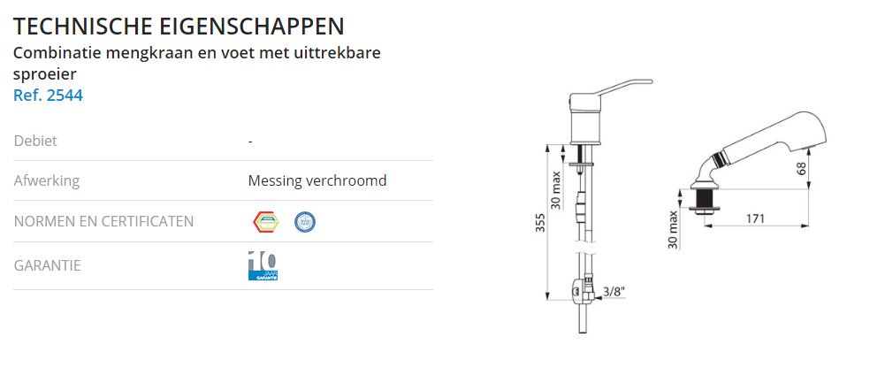 2599EP 1-Greeps mengkraan met openhendel / uittrekbare sproeier