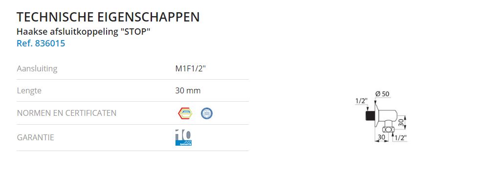 836015 Haakse koppeling met stopkraan 1/2x1/2" tbv Tempostop