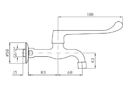 P2958 koudwaterkraan M4 wandmontage met ellebooghendel