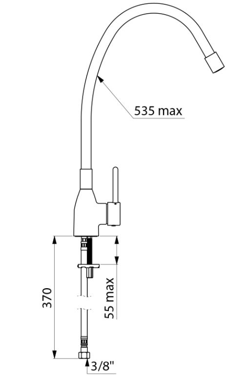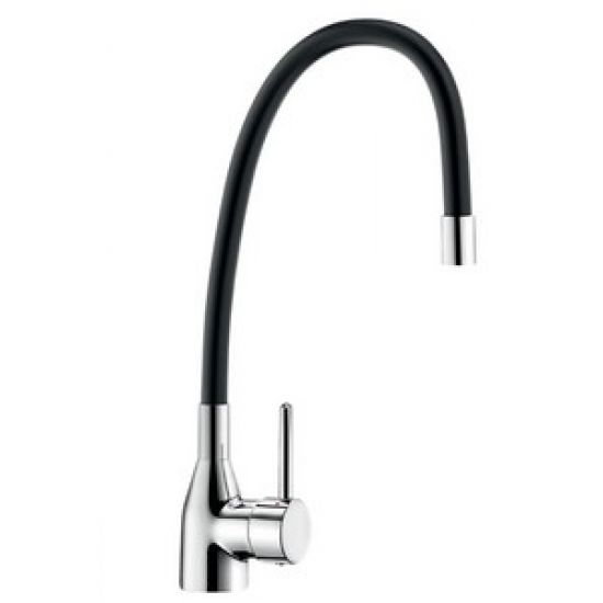 Eéngatsmengkraan op blad met flexibele slang H.535 mm maximum. Mechanische mengkraan met soepele draaibare uitloop met gladde binnenkant, uitgerust met een hygiënische straalbreker. Keramisch binnenwerk Ø 35. Debiet 9 l/min bij 3 bar. Bediening d.m.v. staafgreep. Lichaam in messing verchroomd. PEX flexibels F3/8". Verstevigde bevestiging. Mengkraan geschikt voor intensief gebruik in professionele keukens.