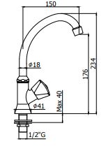 ET091 Fonteinkraan met C-uitloop Ø18 x150 mm met straalbreker chroom