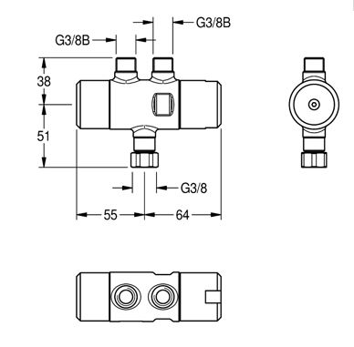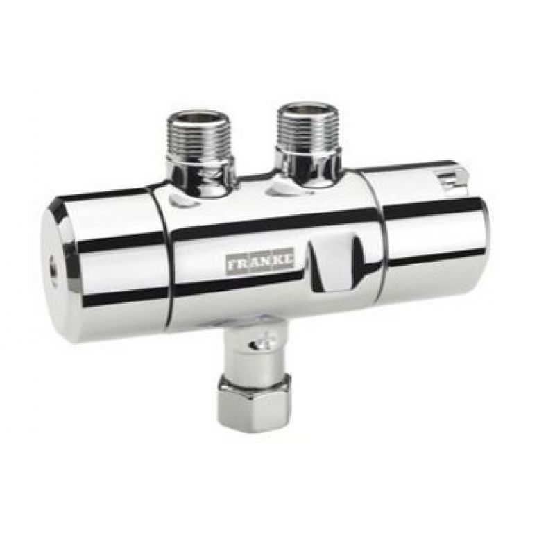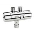 PURETHERM thermostaat DN 10 voor onderbouw als thermische beveiliging tegen verbranding bij koud wateruitval bij wastafelarmaturen, met mogelijkheid voor uitvoering van handmatige thermische desinfectie. Uitgangen G 3/8 B, aansluitwartel G 3/8, voor montage op warm water-hoekstopkraan. Belangrijke opmerking! Aansluitset voor PURETHERM thermostaat moet afzonderlijk besteld worden.(6790)