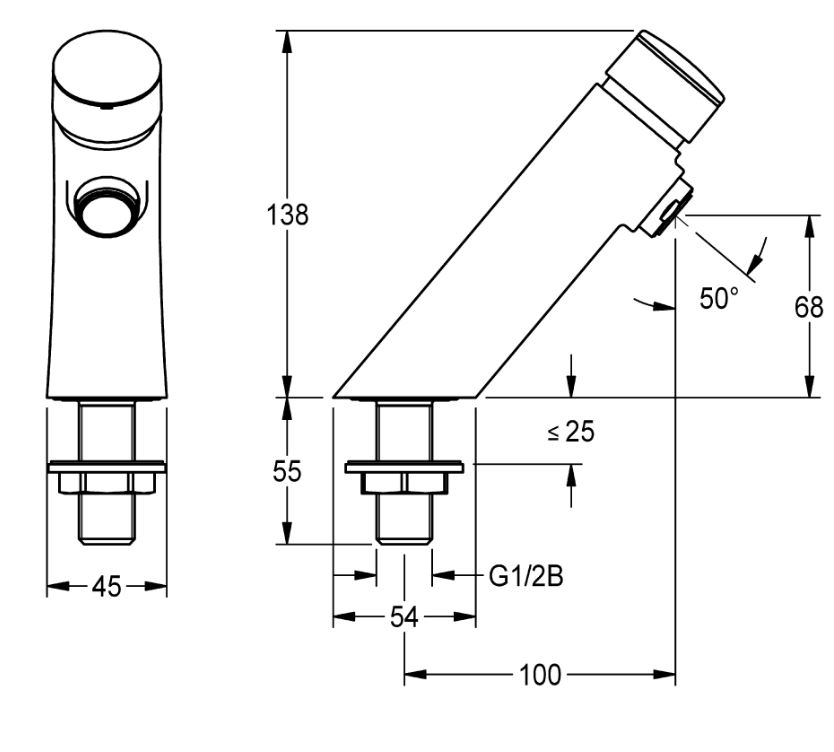 F3SV1001 Zelfsluitende wastafelkraan loopt. 5 - 20 sec. Uitloop 100mm