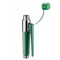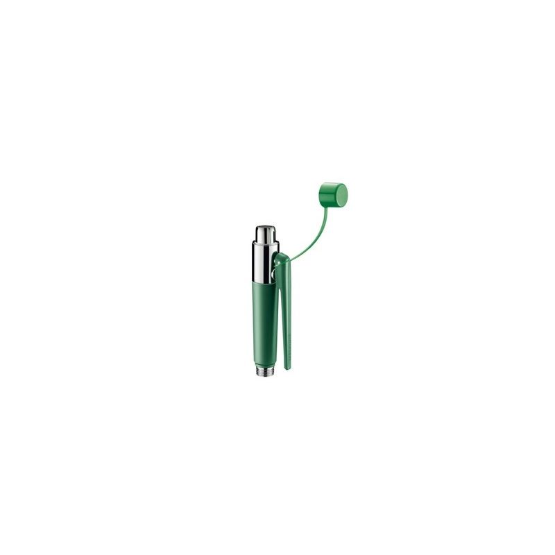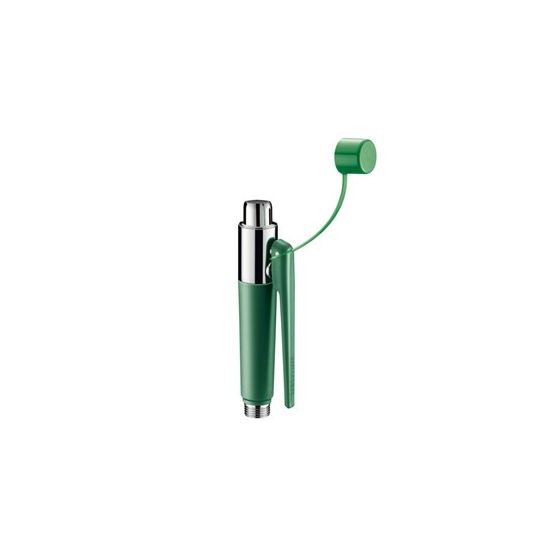 Enkele sproeier voor oogspoeler, muurmodel met haak 15 x 100: De sproeikop is voorzien van een beschermdopje in schokvrij ABS groen dat automatisch wordt verwijderd door de druk van het water. Zal in werking treden door de hendel in te drukken. Automatische sluiting door veer. Debiet 16 l/min bij 3 bar, beluchter met dubbele RVS filter. Ergonomische greep in groen ABS, hendel in groen polypropyleen. Pictogram "oogspoeler" is voorzien.