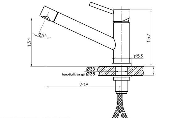 RVS 1-hendel keuken mengkraan met bovenhendel
