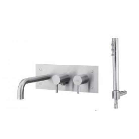 RVS bad en handdouche set. Complete set met RVS thermostaat douchekraan, RVS handdouche met RVS douchekop