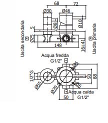 STEEL015.. RVS Inbouw douchemengkraan 1/2" met omsteller Compleet met rozetten