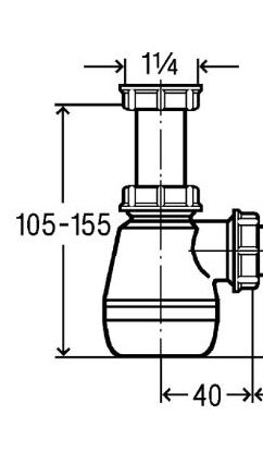 Kunststof bekersifon 1,25" tbv bidet of wastafel/spoelbak (zonder muurbuis)