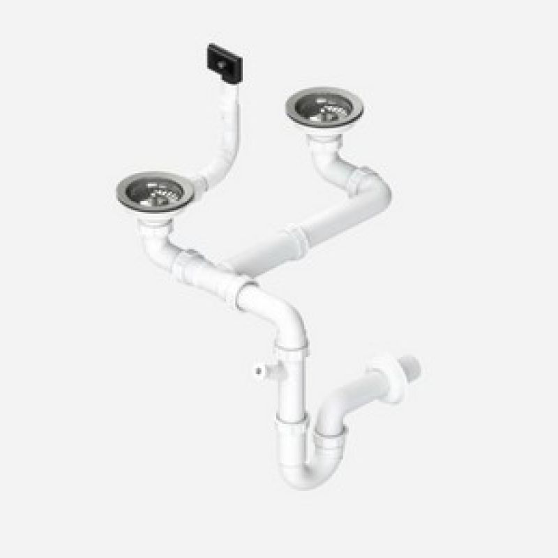 Complete set voor dubbele spoelbak met korfplug met wandoverloop (geperf.) RODI bakken (complete set)