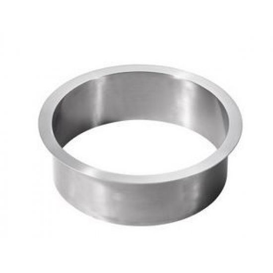 RVS stortkoker, inwendig 200mm. Hoogte 100mm. Inwendig rand geslepen.t.b.v. interieurbouw, vlakke inleg geschikt. Uitw. 2 stuks 240mm / 1 stuks 230mm. Licht beschadigd.