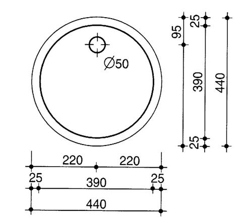 C380KP RVS spoelbak opbouw 380mm met korfplug