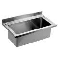 Grote RVS spoelbak met inw. ronde hoeken en waterkering. Voor wandmontage met consoles of montage op onderkast of frame. Blokprofiel aan achterzijde 100mm hoog. Compleet met 1,5" afvoerplug en standpijp. Inw. afm 1060x500x375mm.