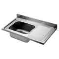 RVS Grootkeuken aanrecht met enkele spoelbak voor wandmontage. Bakmaat 600x500x320mm compleet met 1,5" afvoerplug en standpijp. Achterzijde blokprofiel. Links model.