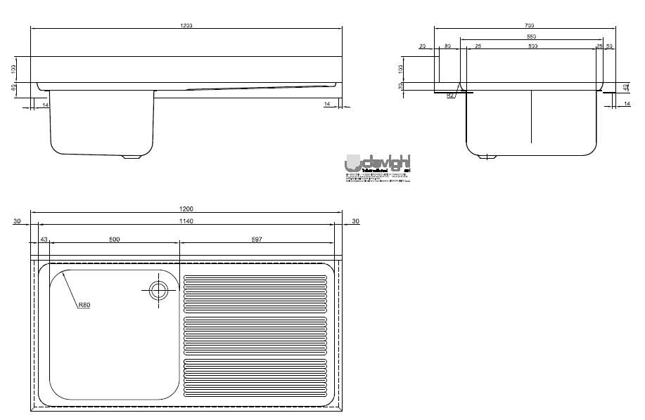 EA712L RVS 304 aanrecht 1200x700mm bak 500x500x300mm links