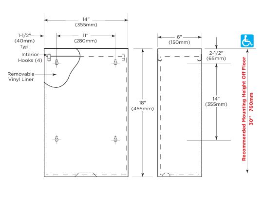B279 RVS afvalbak voor wandmontage 24,2L Afm. 355x455x150mm
