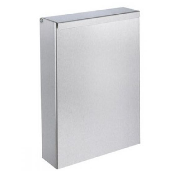 RVS hoogglans gepolijst afvalbakje 6 ltr 310x210x70mm. Extra platte afvalkorf muurmodel. Verstevigd model met deksel. Dikte RVS: 1 mm.