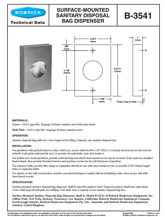B3541 RVS 304 dispenser tbv afvalzakjes satin finish