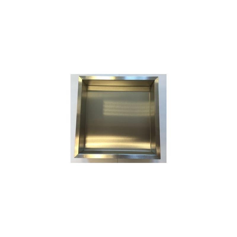 RVS 304 inbouwnis voor douche/badkamer. Inw. 295x295x70mm. Rondom flens 4mm