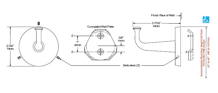 Haak en flens zijn van een geheel (messing vernikkeld)