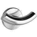 Dubbele kledinghaak in RVS glanzend gepolijst. Verborgen bevestigingen. Buis Ø 20, dikte 1 mm. Afmetingen: 55 x 95 x Ø 62 mm.