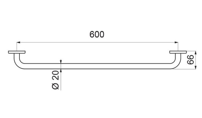 Handdoekdrager 1 stang. Verstevigd model. Buis Ø 20, lengte 600 mm. Bacteriostatisch RVS 304 gepolijst. Onzichtbare bevestigingen.