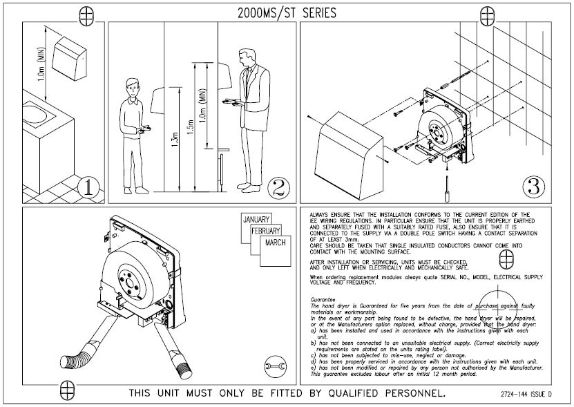 RVS Handendroger met sensor voor wandmontage. Aansluiting: 2.0 Kw/220V.