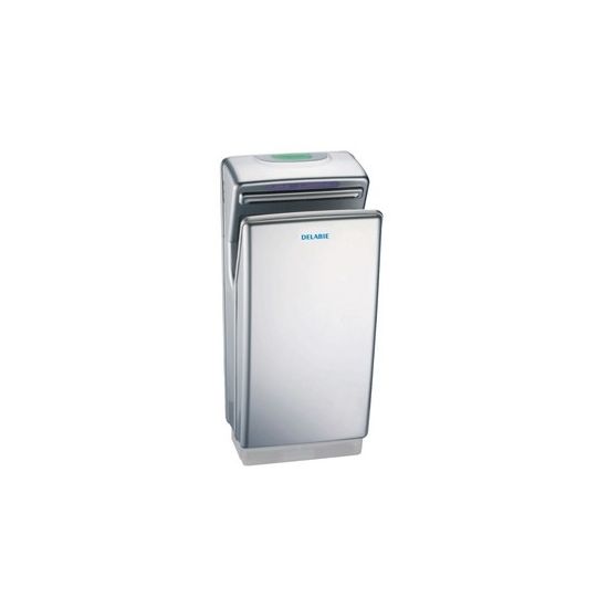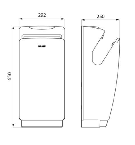 grijs metalic met dubbele luchtstraal Handendroger met dubbele luchtstraal. Automatische inwerkingstelling d.m.v. infrarood detectie. Intelligente technologie: sluit automatisch bij het verwijderen van de handen of na 18 seconden droogtijd. LCD scherm met geanimeerde gebruiksaanwijzing gaat automatisch in standby. Ultra snelle droogtijd: 10 tot 18 seconden. Afneembaar waterreservoir waardoor er geen waterdruppels op de muur of de vloer terechtkomen:gemakkelijkinonderhoud. Antibacteriële luchtfilter en actieve koolfilter. Afmetingen: 250 x 292 x 650 mm. Gewicht: 11,4 kg. Type motor: slijtvaste brushless motor. Energiebesparing: vermogen 850 W. Zonder verwarmingselement. 220-240 V~ / 50-60 Hz. Luchtverplaatsing: 42 l/seconde. Luchtsnelheid: 310 km/h. Geluidsniveau: 75-80 dBA. Klasse I, IP22. CE. Garantie: 3 jaar.