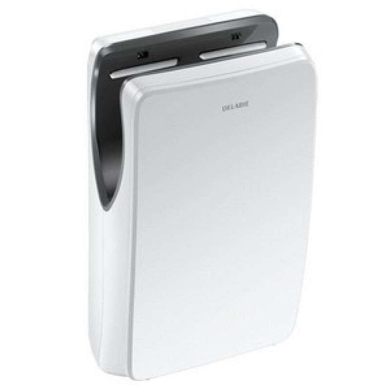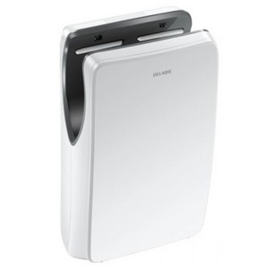 SPEEDJET 2 handendroger met dubbele luchtstraal in wit. Contactloze elektronische handendroger met ultrasnelle droogtijd: 10 tot 12 seconden. Comfort: warme lucht. Antibacterieel ABS voor een maximale hygiëne. Afneembaar waterreservoir waardoor er geen waterdruppels op de muur of de vloer terechtkomen: gemakkelijk in onderhoud. HEPA filter: 99,99% van de bacteriën in de lucht wordt opgevangen. Automatische inwerkingstelling d.m.v. infrarood detectie. Intelligente technologie: sluit automatisch bij het verwijderen van de handen. Anti-blokkeerveiligheid: stopt automatisch bij ononderbroken gebruik langer dan 30 seconden. Afmetingen: 180 x 320 x 540 mm. Gewicht: 6,83 kg. Energiebesparing: de verwarmingsweerstand stopt automatisch vanaf een temperatuur > 25°C. Beperkt energieverbruik: vermogen 1.050 W in modus zonder verwarming, 1.550 W in verwarmingsmodus. 230 V~ / 50 Hz. Luchtverplaatsing: 61 l/seconde. Luchtsnelheid: 540 km/h. Geluidsniveau: 66 dBA. Klasse II, IP21. CE. 3 jaar garantie.