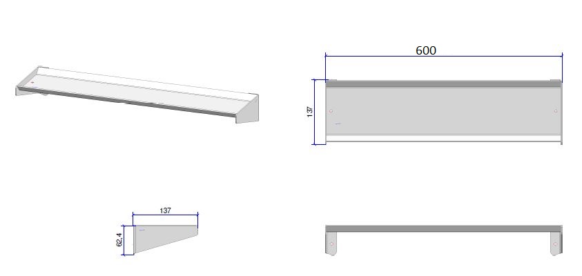 BR7556 RVS planchet 600x137mm wandschap