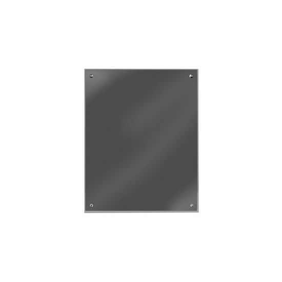 RVS Spiegel 1mm zonder frame voor wandmontage. Uitvoering hoogglans gepolijst (mirror 8). Omgezette kanten 10mm met aan de achterzijde een houten plaat (los meegeleverd). Incl. 4 schroefgaten. Incl. achterplaat. Incl. montagegaten