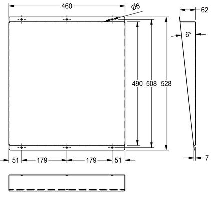 RVS 304 Spiegel voor opbouw vast schuin naar beneden afgesteld afm. 460x531x62mm
